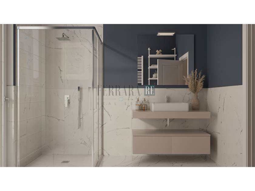 L’immobile è consegnato ristrutturato, rifinito e non arredato: la pavimentazione sarà realizzata utilizzando parquet spina all’italiana in rovere chiaro, bagno in grès porcellanato marmorizzato altezza m 2.40 in doccia e rubinetteria Fiore.