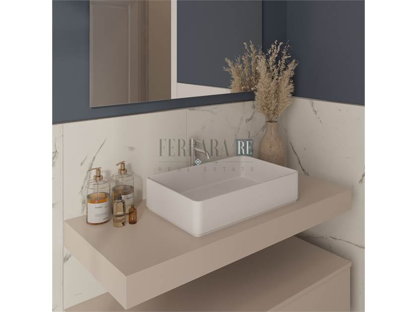 L’ingresso è direttamente sul living e cucina, pieno di finestre a tutta altezza che gli donano un’incredibile luminosità; da qui inoltre si accede a un primo bagno con spazio lavanderia e al disimpegno che porta alle due camere entrambe matrimoniali, di cui la suite padronale con bagno privato e cabina armadio, più un terzo spazio comodo come terza camera o studio ed a un terzo bagno.