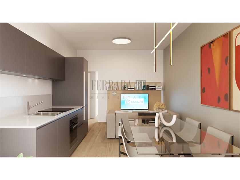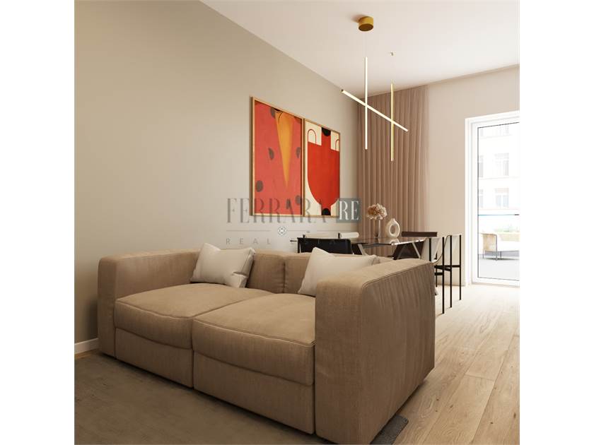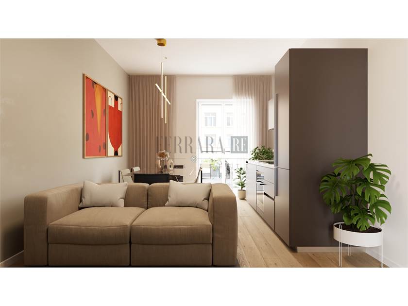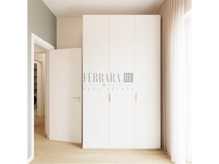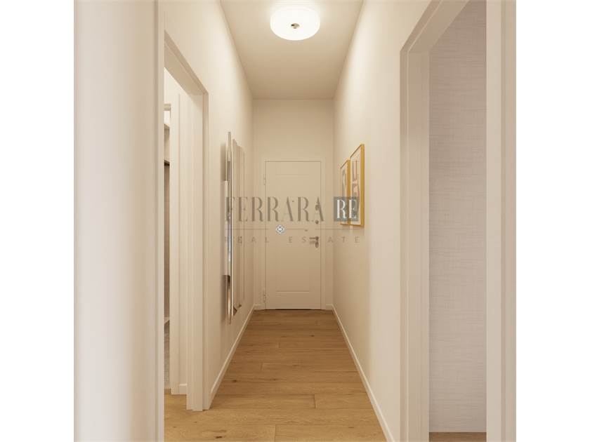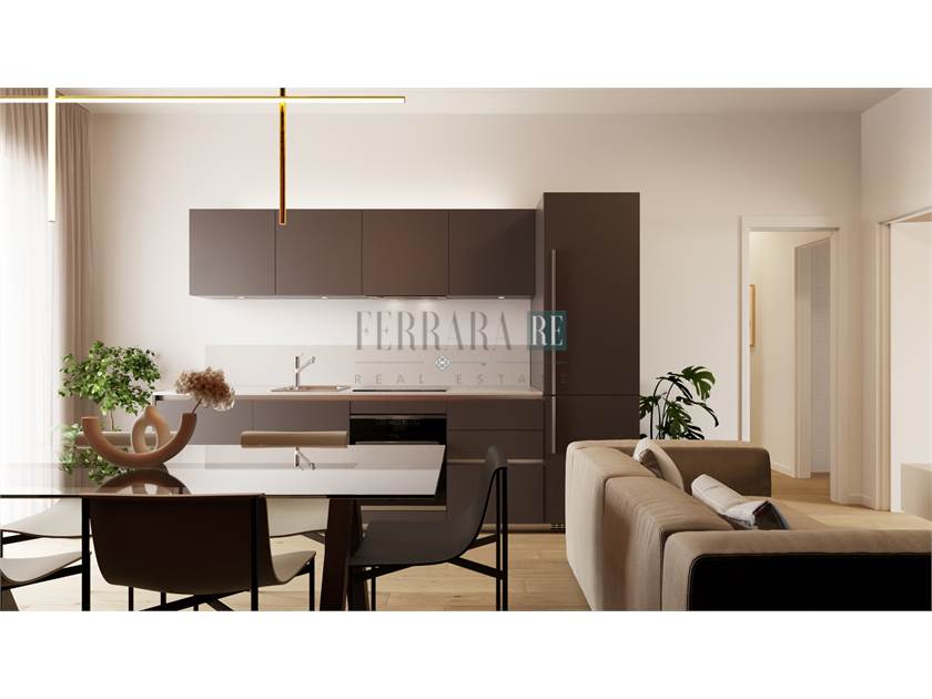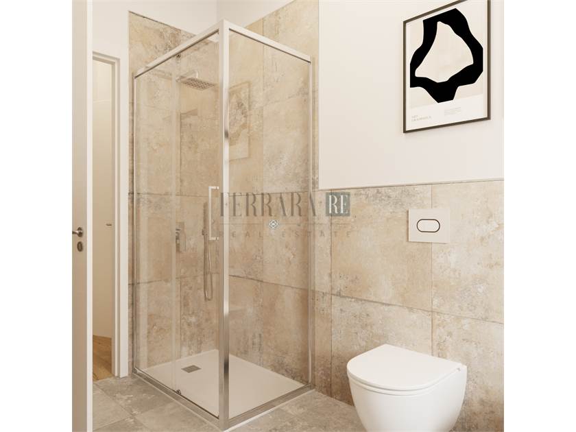 Il trilocale di circa 73mq si compone di un ingresso su piccolo disimpegno e accesso alla zona living, con cucina a vista, che affaccia sull’ampio terrazzo abitabile; due camere matrimoniali e un grande bagno finestrato completano lo spazio, ben distribuito e razionale per non sprecare neanche un mq.