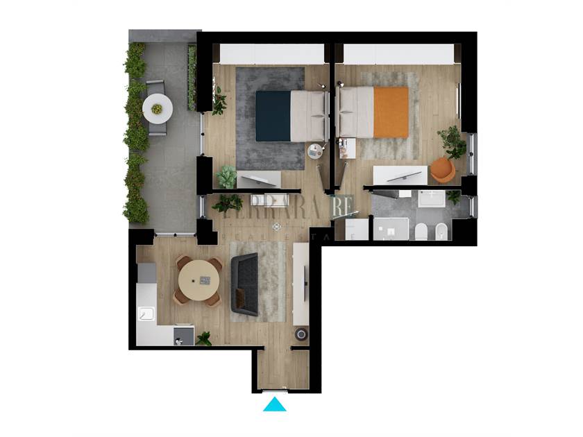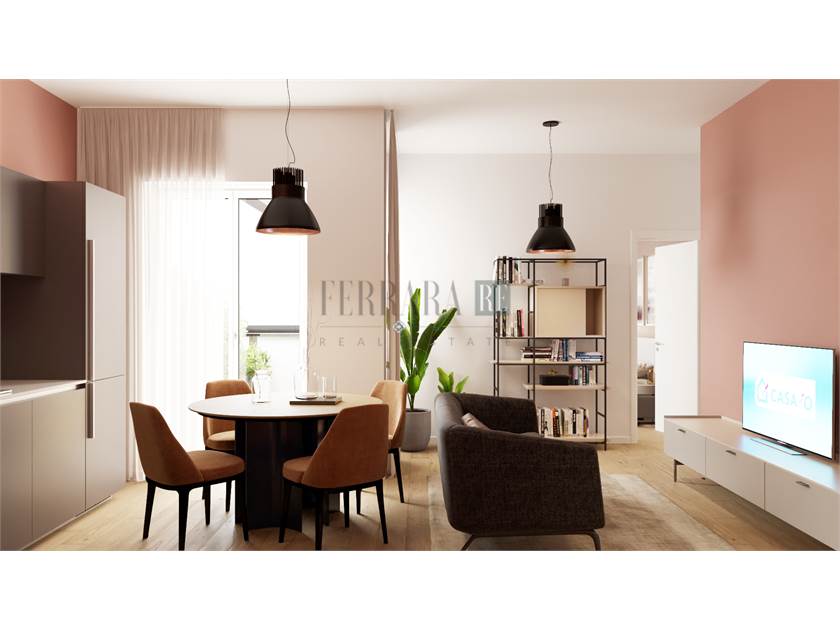 L’appartamento viene consegnato completamente rifinito, non arredato e si compone di un ingresso su ampio disimpegno con accesso alla zona living, le due camere, molto spaziose, angolo lavanderia e bagno. La zona giorno con cucina a vista, affaccia sul grandissimo terrazzo abitabile perfetto per una cena estiva o per godere di uno spazio verde esterno; ben distribuito e razionale per non sprecare neanche un mq, ha tante finestre e doppia esposizione: la casa sarà luminosa tutto l’anno.