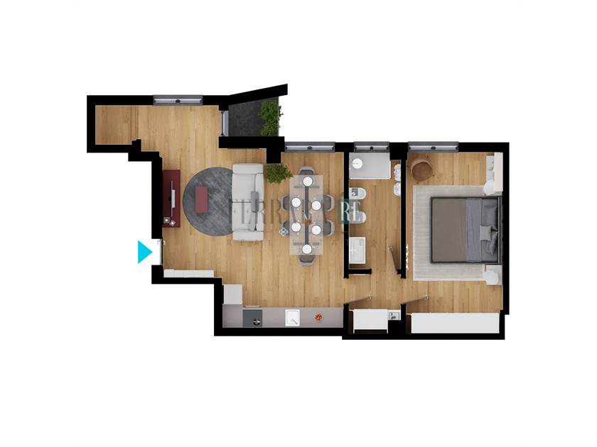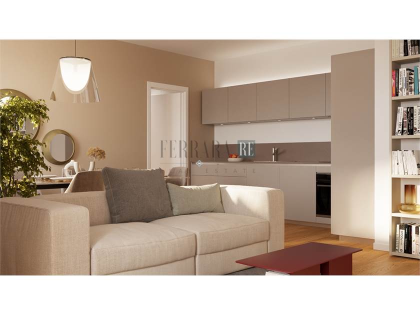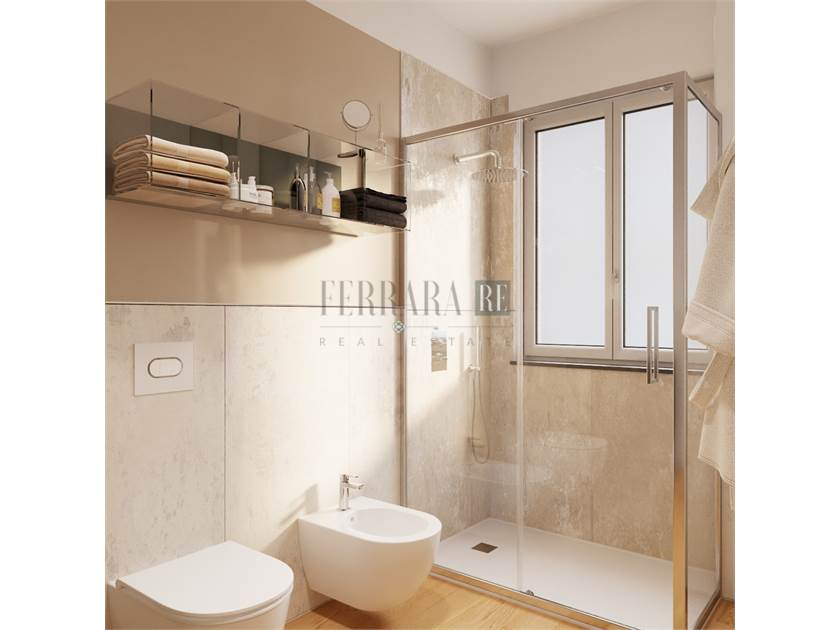 L’ingresso si apre sulla zona living con cucina a vista racchiusa in una nicchia, tante finestre e balconcino con affaccio interno tranquillo e silenzioso. Un piccolo disimpegno con predisposizione lavanderia, permette l’accesso al bagno finestrato con doccia e all’ampia camera padronale.