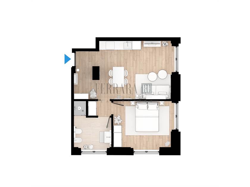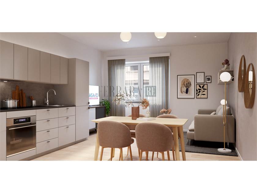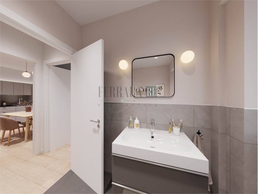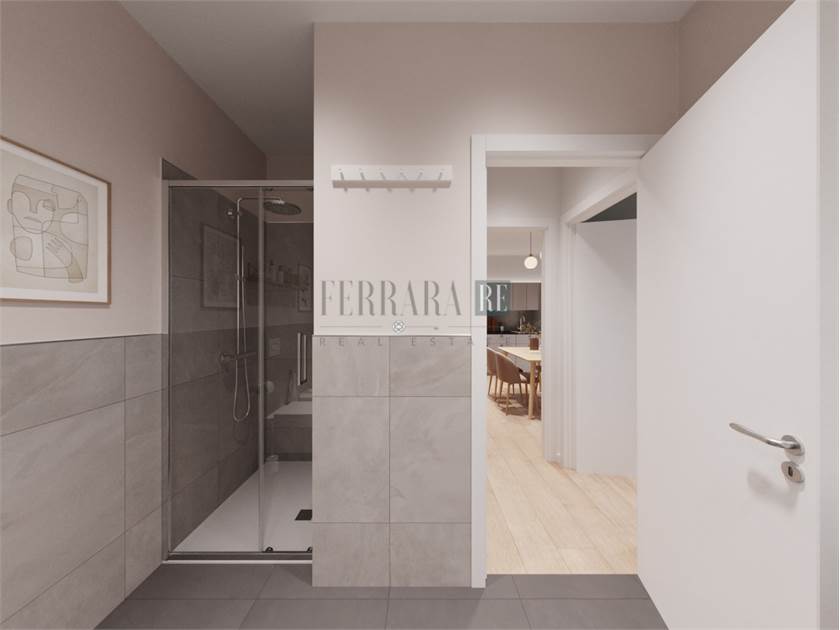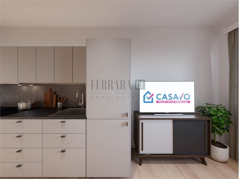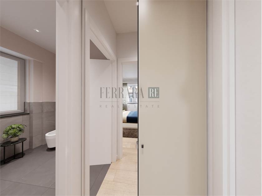 Splendida esposizione esterna sul corso, luminoso e silenzioso. Dal taglio perfettamente razionale, l’ingresso si apre su un ampio spazio living open space con cucina a vista e da qui l’accesso al disimpegno, bagno finestrato e camera padronale.