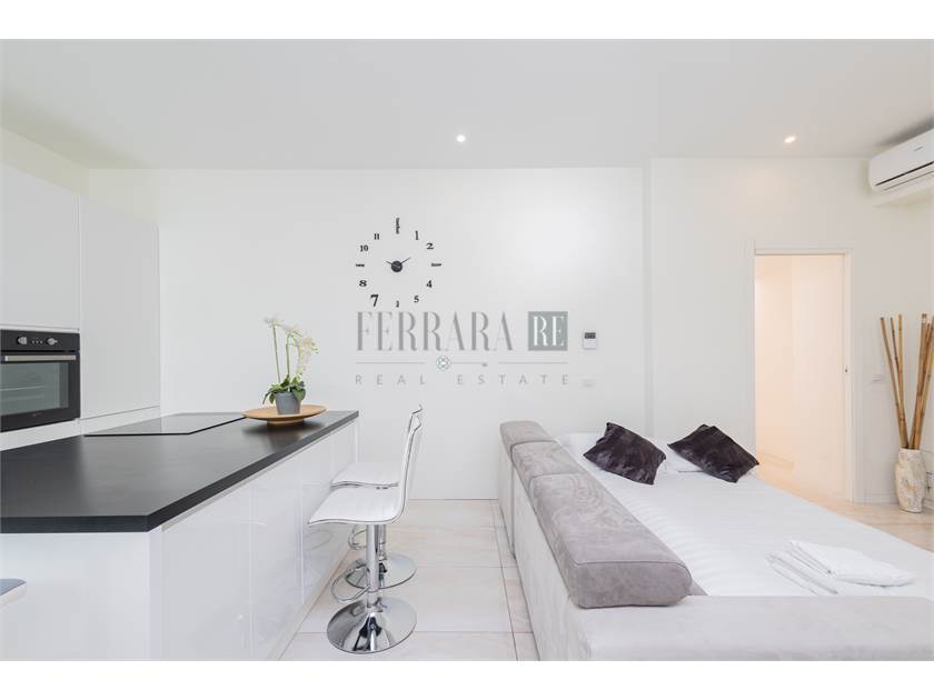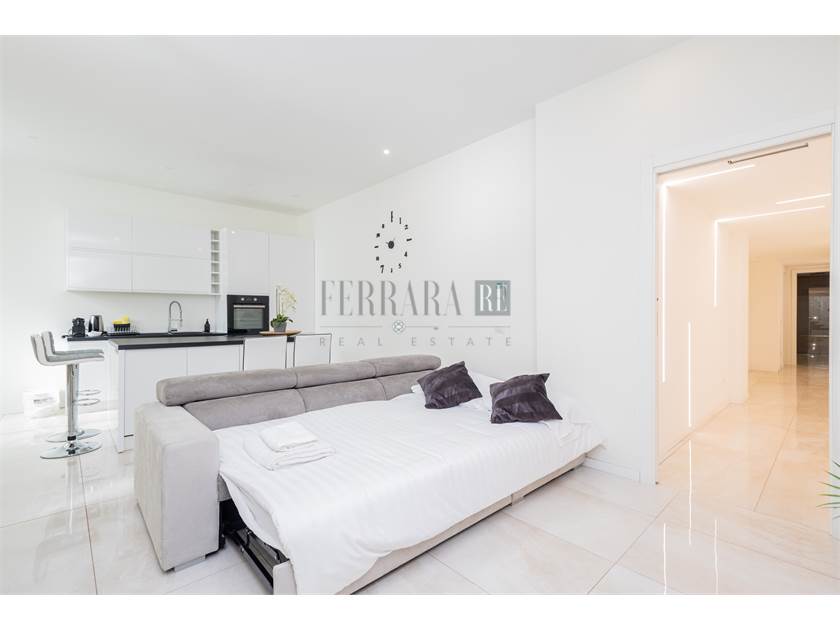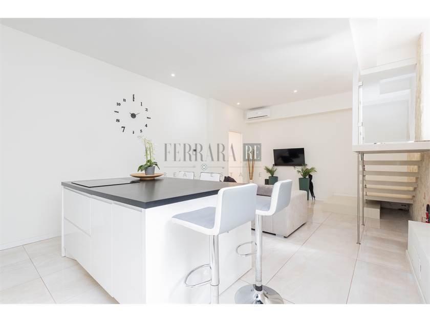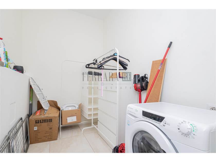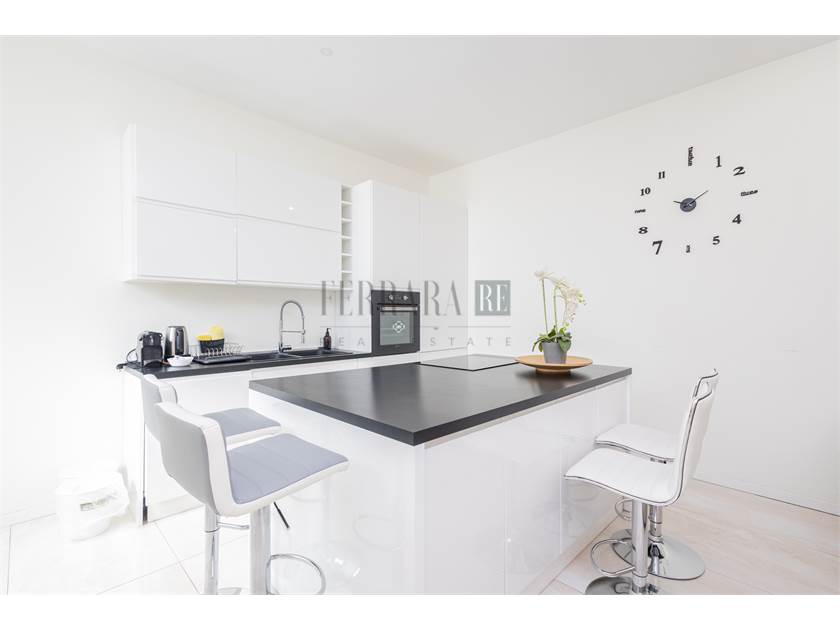 L’immobile si apre su una luminosissima zona giorno con cucina a vista, perfetta come ambiente living moderno e funzionale. Un lungo disimpegno conduce alla camera matrimoniale di generose dimensioni, ideale per chi cerca spazi comodi e ben distribuiti. A completare la proprietà troviamo due bagni, entrambi di ottima metratura, che garantiscono praticità e comfort nella gestione quotidiana.