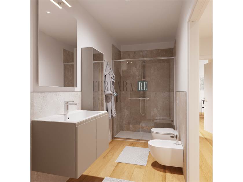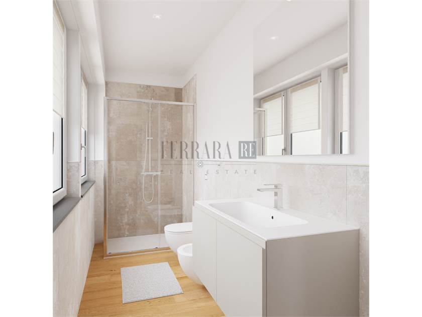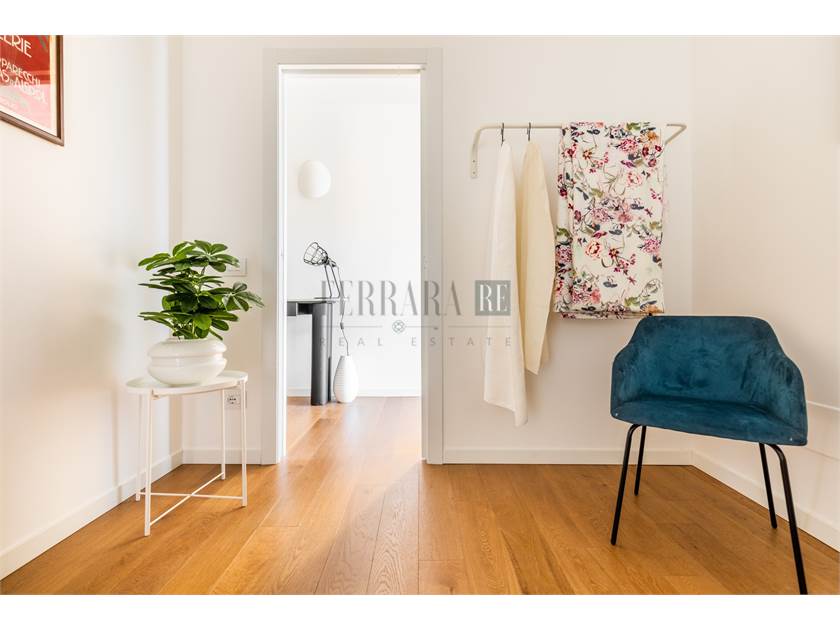 L’appartamento si apre su uno spazioso ingresso disimpegno, molto utile se utilizzato come cappottiera e scarpiera, con accesso a uno dei due bagni, completo con doccia e predisposizione attacco lavatrice e asciugatrice, totalmente separato dalla zona living a cui si accede da un altra porta: la zona giorno, grande e rettangolare permette di utilizzare perfettamente gli spazi, chiudendo la cucina in un suo apposito spazio decentrato e lasciando al salotto una sua dimensione. Dalla qui l’accesso diretto alle due camere matrimoniali di cui la padronale con doppia finestra e secondo bagno en suite finestrato. Una soluzione stupenda, ristrutturata nuovo, parquet a pavimento, grès in bagno, riscaldamento centralizzato compreso nelle spese, ascensore e cantina.
