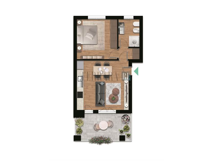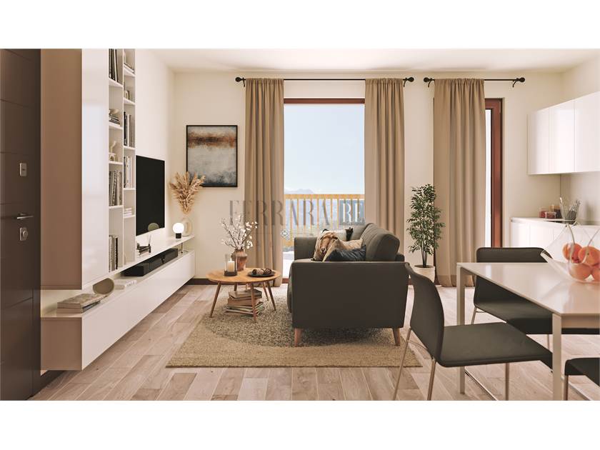 Ogni bilocale è composto da luminoso soggiorno con angolo cottura, camera matrimoniale, bagno finestrato, cantina e posto auto privato. Il terrazzo spazioso e soleggiato, ideale per fare colazione, pranzare o rilassarsi all’aperto, offre una splendida vista aperta sulle montagne, regalando momenti di vero relax in ogni stagione.
