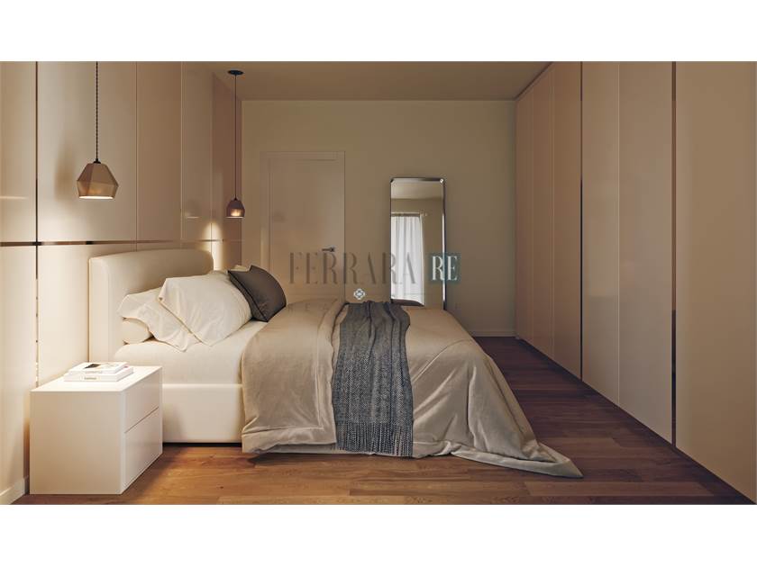 L'appartamento è composto da ingresso, zona giorno con cucina a vista e balcone, due camere matrimoniali con balcone e bagno.